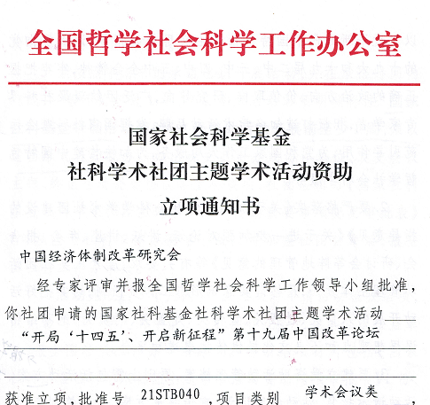 根據(jù)全國哲學(xué)社會科學(xué)工作辦公室發(fā)布的“2021年國家社科基金社科學(xué)術(shù)社團(tuán)主題學(xué)術(shù)活動資助名單” ,我會以 “開局‘十四五’、開啟新征程”為主題的第十九屆中國改革論壇獲得國家社科基金立項資助。這是繼今年3月份我會《推進(jìn)土地、勞動力、資本、技術(shù)、數(shù)據(jù)等要素市場化改革研究》課題獲得國家社科基金重大項目立項后,兩年內(nèi)第四次獲得國家社科基金資助(獎勵)。