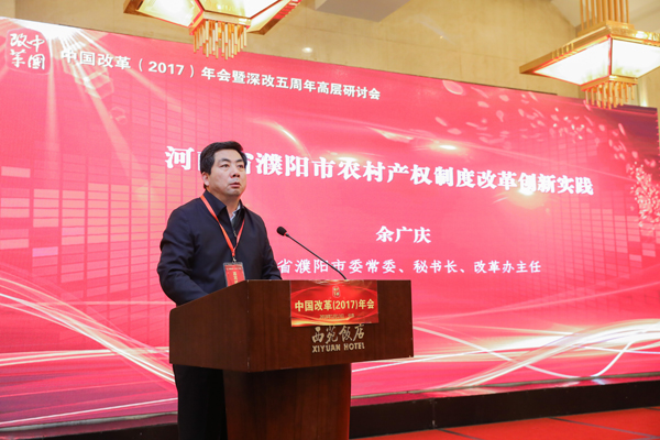河南省濮陽市委常委、秘書長、改革辦主任余廣慶介紹了濮陽特色鮮明的農(nóng)村集體產(chǎn)權(quán)制度改革經(jīng)驗:在推進農(nóng)村集體產(chǎn)權(quán)制度改革中,濮陽市農(nóng)村黨支部成為基層黨建工作的一個重大創(chuàng)新,市委領(lǐng)導(dǎo)親自上陣親自督辦、跟蹤進度;建成了比較完善的市縣鄉(xiāng)三級產(chǎn)權(quán)交易平臺,充分釋放農(nóng)村要素活力;依托市縣兩級黨校邀請專家解讀改革政策改革事件推動農(nóng)村改革。