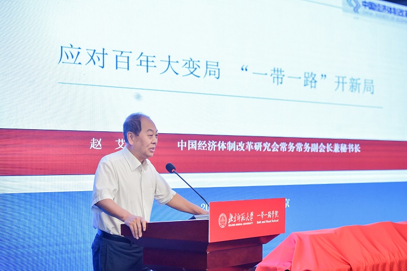 9月3日,我會常務副會長兼秘書長趙艾應邀出席北京師范大學120周年華誕慶典活動期間舉辦的第四屆京師“一帶一路”論壇暨《高質(zhì)量共建“一帶一路”叢書》發(fā)布會并在開幕式上以“應對百年大變局,一帶一路開新局”為題致辭。