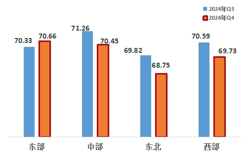 從四大區(qū)域來(lái)看,東部、中部、東北、西部地區(qū)分別為70.66、70.45、68.75、69.73,排名分別為東部第一,中部第二,西部第三,東北第四。與上一季度相比,東部地區(qū)改革熱度指數(shù)提升。