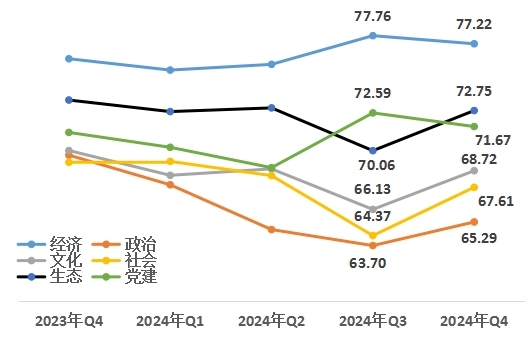 中國(guó)經(jīng)濟(jì)體制改革研究會(huì)“改革熱度指數(shù)”課題組認(rèn)為,面對(duì)當(dāng)前外部環(huán)境變化帶來(lái)的不利影響加深,我國(guó)經(jīng)濟(jì)運(yùn)行仍面臨不少困難和挑戰(zhàn),但我國(guó)經(jīng)濟(jì)基礎(chǔ)穩(wěn)、優(yōu)勢(shì)多、韌性強(qiáng)、潛能大,長(zhǎng)期向好的支撐條件和基本趨勢(shì)沒(méi)有變。從改革熱度指數(shù)看,政治、文化、社會(huì)、生態(tài)領(lǐng)域熱度值提升,經(jīng)濟(jì)、黨建領(lǐng)域熱度值和宣傳度熱度值略有下降,四季度改革熱度指數(shù)依然保持高位運(yùn)行。2025年是貫徹黨的二十屆三中全會(huì)精神的重要一年,隨著各項(xiàng)改革逐步推進(jìn)、一攬子增量政策落地見(jiàn)效,必將為高質(zhì)量發(fā)展和推進(jìn)中國(guó)式現(xiàn)代化提供更有力的支撐。