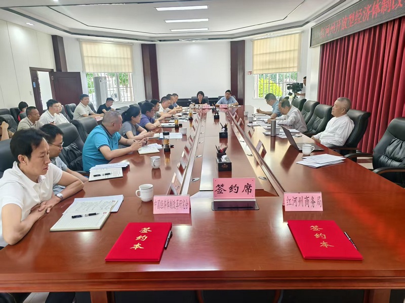 在紅河州調(diào)研期間,趙艾以“擴大沿邊開放是推進(jìn)中國式現(xiàn)代化的重要任務(wù)”為題,為州委書記趙瑞君主持的州委中心組集中學(xué)習(xí)做專題報告。州委副書記、州長羅萍等州委理論學(xué)習(xí)中心組成員出席,州委、州政府有關(guān)領(lǐng)導(dǎo)、相關(guān)部門負(fù)責(zé)同志列席,全州13縣(市)主要負(fù)責(zé)同志以視頻形式聽講。副州長許高紅主持召開“紅河州開放型經(jīng)濟體制改革專項小組”專題會,州委政研室、州商務(wù)局、開放辦、交通運輸局、農(nóng)業(yè)農(nóng)村局、外辦、蒙自海關(guān)、稅務(wù)局、金融監(jiān)管局、人民銀行紅河支行等單位負(fù)責(zé)同志參加并發(fā)言,向調(diào)研組介紹了有關(guān)情況。紅河州商務(wù)局出面與我會“一帶一路”建設(shè)專委會簽訂了合作框架協(xié)議。調(diào)研組還到云南錫業(yè)化工材料有限公司、云南美科新能源發(fā)展有限公司、蒙自經(jīng)開區(qū)管委會、元陽縣鄉(xiāng)村振興產(chǎn)業(yè)園、云南自貿(mào)試驗區(qū)紅河片區(qū)(河口邊合區(qū))、河口口岸等實地調(diào)研。
