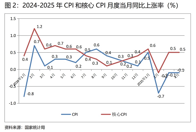 (二) CPI降幅與上月持平。4月份,CPI同比下降0.1%,與3月份下降0.1%持平, CPI已連續(xù)3個(gè)月下降,也是自上年2月份以來再次出現(xiàn)的下降;4月份,核心CPI同比上漲0.5%,與3月份上漲0.5%持平。CPI保持下降的趨勢(shì),雖然有國(guó)際石油價(jià)格下降因素的影響,但核心CPI仍保持在低位運(yùn)行,說明需求特別是消費(fèi)需求仍還較為偏弱,擴(kuò)大需求特別是消費(fèi)需求還需要進(jìn)一步加大力度。