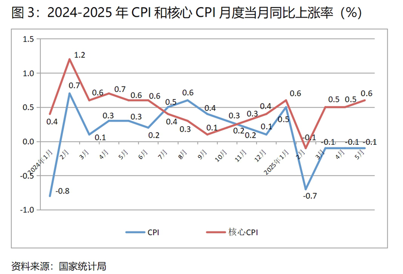 (三) CPI降幅持續(xù)持平。5月份,CPI同比下降0.1%,與4月份下降0.1%持平, CPI已連續(xù)4個(gè)月下降,連續(xù)3個(gè)月保持下降0.1%;5月份,核心CPI同比上漲0.6%,比4月份上漲0.5%上升了0.1個(gè)百分點(diǎn)。CPI保持持續(xù)下降的趨勢(shì),有季節(jié)性食品和國(guó)際石油價(jià)格下降因素的影響,但核心CPI漲幅仍保持在低位運(yùn)行,說(shuō)明需求特別是消費(fèi)需求仍還較為偏弱,擴(kuò)大需求特別是消費(fèi)需求還需要進(jìn)一步加大力度。